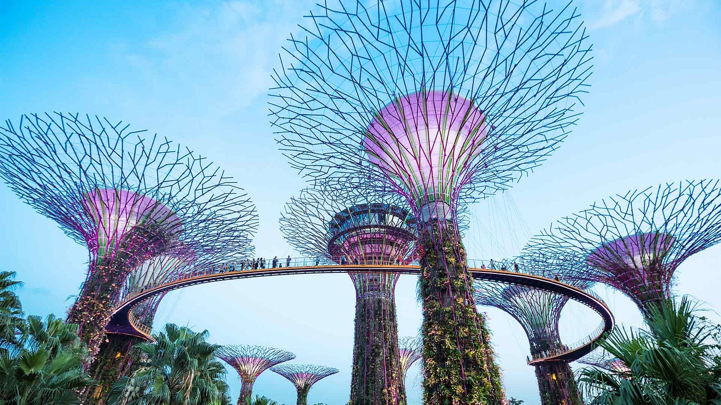 [The Supertree Grove] has become a flagship image of ‘Solarpunk’: a science-fiction/speculative sub-genre that projects the optimistic possibility of a more habitable world in the face of environmental crisis through the inventive use of technology with respect to nature.