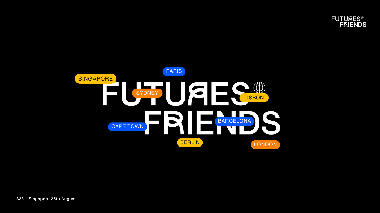 I had the pleasure of sharing my 333 (3 trends in 3 slides in 3 minutes) at the very first Future Friends gathering in Asia, held right here in Singapore! Here’s what I talked about, including contextual details I did not get to share within the 3 minute time limit!